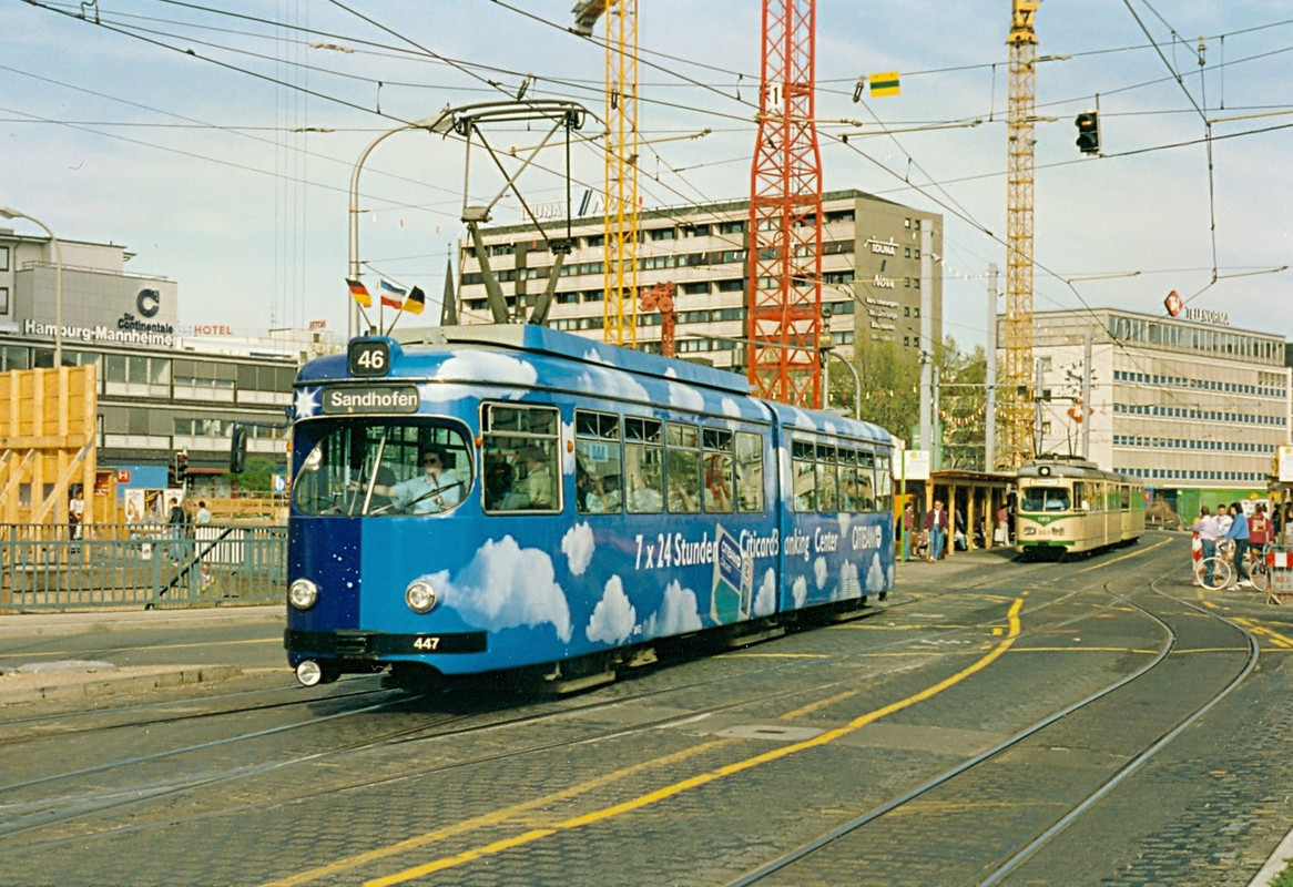 445 und 447 hatten identische Werbungen, hier der 447 am 26. April 1993 vorm Hauptbahnhof.