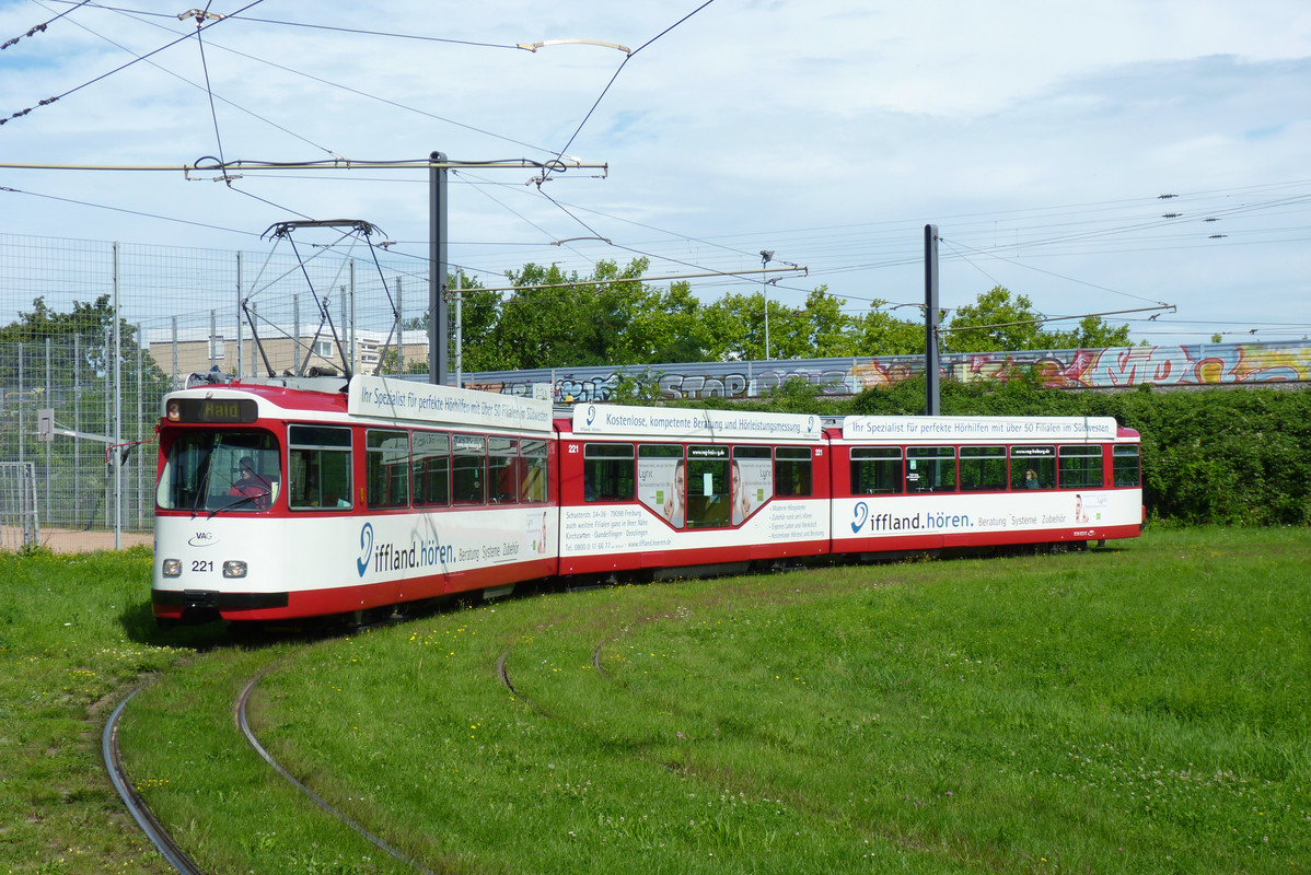 ...als am 11. Juli 2010 der Freiburger GT8N 221 die Endschleife an der Innsbrucker Straße im noch neuen Stadtteil Vauban umrundete.