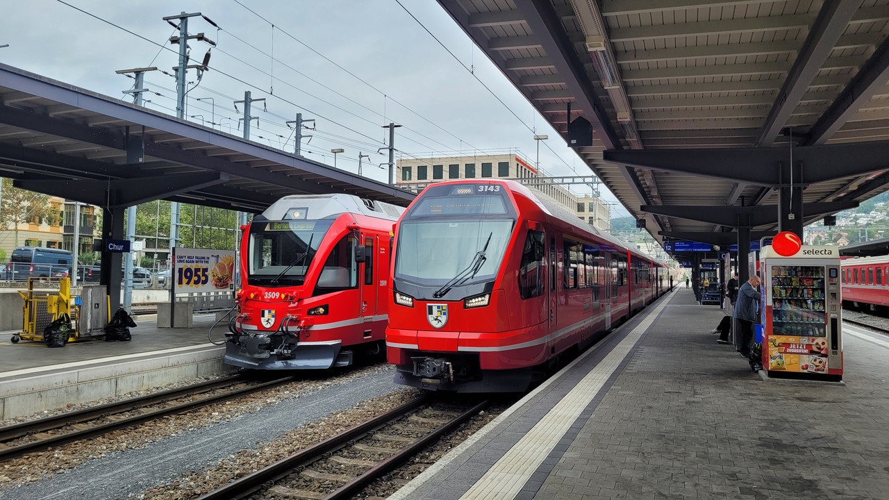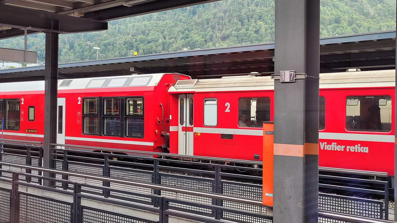 Capricon Zügen (Capricon = rätoromanisch Steinbock) hatte ich schon eine Menge gehört – nun also eine Fahrt damit. Gut damit die Front gefälliger erscheint, hätte man die unteren Leuchten des Dreilichtspitzensignals weiter nach unten setzten können → ist jedoch Ansichtssache. Auf jeden Fall gefallen sie mit besser als der (danebenstehende)