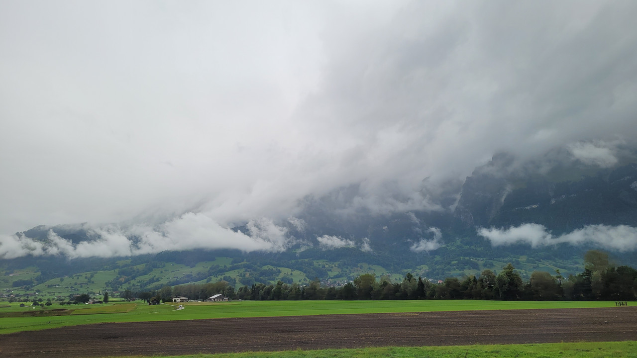 Rheintal war es (meist) auch ländlich → aber dies erwartet der geneigte Tourist dort eben. Die Berge, die man dort auch erhofft, sind wohl da (Erinnerung aus einer früher(TM)en Reise), aber an diesem Tage meist hinter Nebel verborgen.