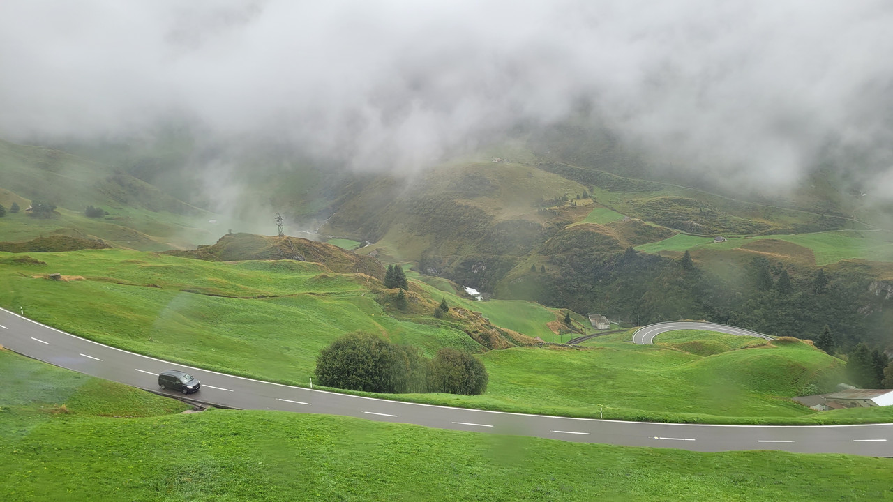 Wenn's bergauf geht, muss es – zwangsläufig – auch wieder runter gehen. Je weiter runter, desto weniger Nass kam vom Himmel, wie mein Schnappschuss in den Schleifen zwischen