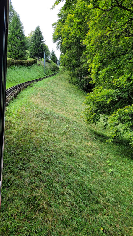 Als steilste Zahnradbahn der Welt (immerhin 48%) braucht man für die 4,6km lange Strecke ein besonderes Zahnstangensystem, da sonst die Gefahr des aufklettern besteht.