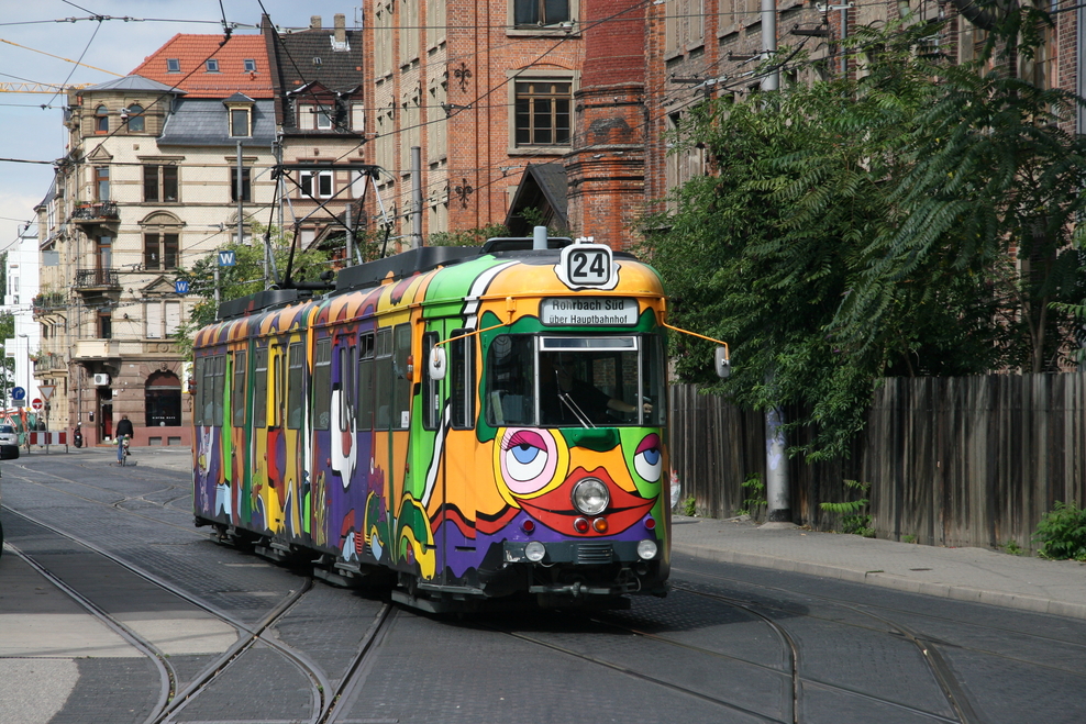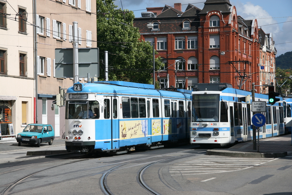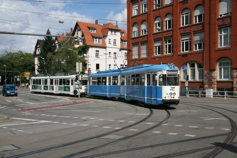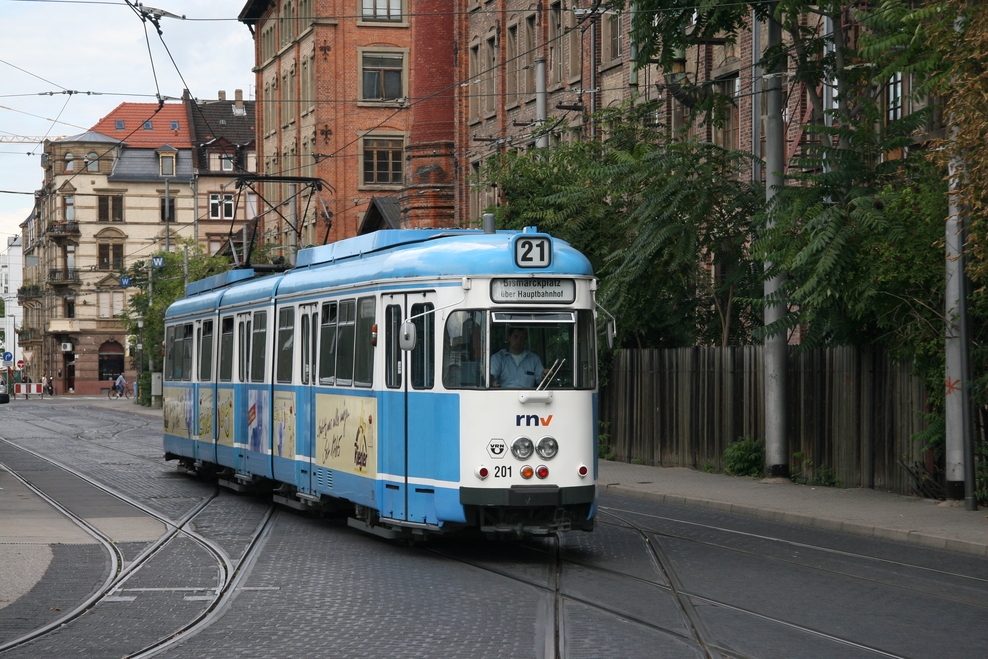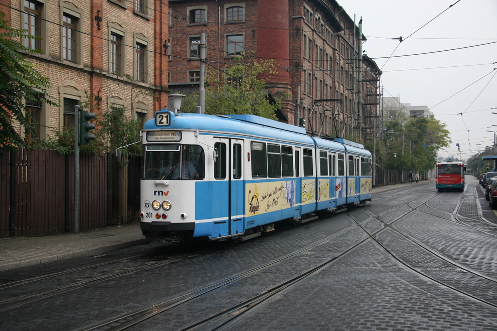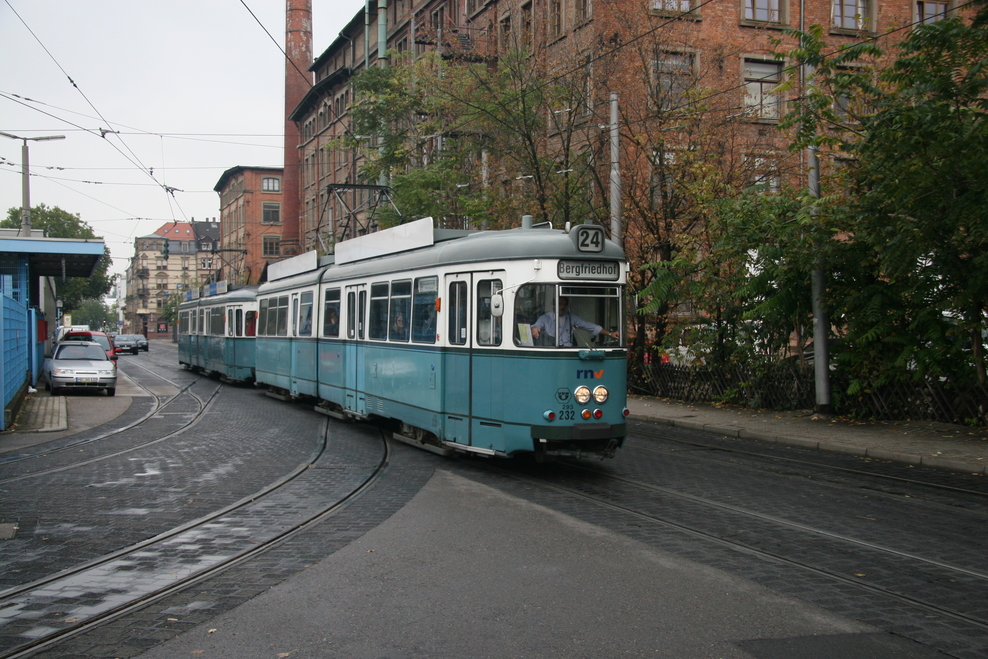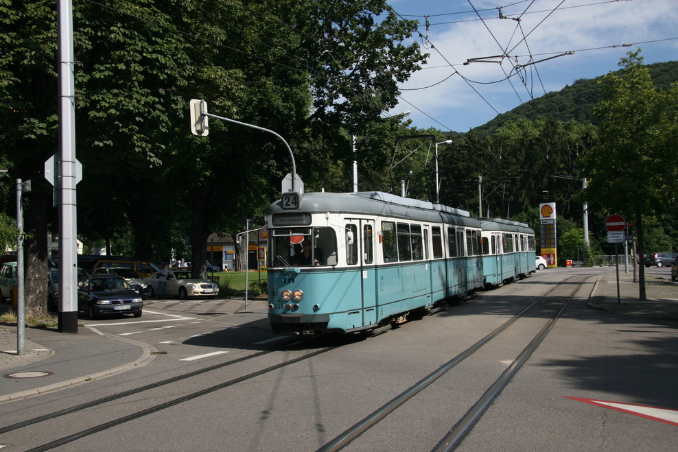 Hier sehen wir verschiedene Fahrzeugtypen, die mittlerweile bzw. in naher Zukunft fahrplanmäßig nicht mehr eingesetzt werden (GT 6-Doppeltraktionen, GT8, nicht modernisierte M8C, MGT6D und GT8 ex OEG). Auch 2 der zeitweise auf der Linie 21 eingesetzten GT8 ex OEG habe ich erwischt.